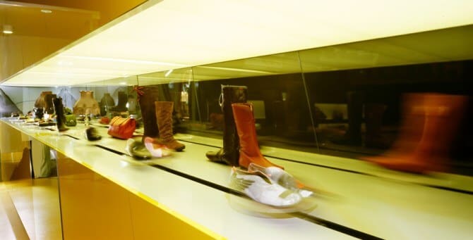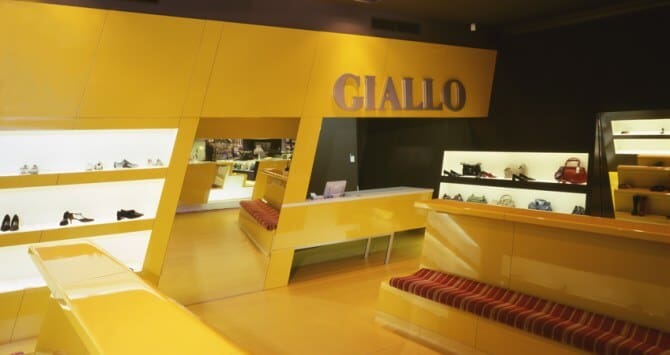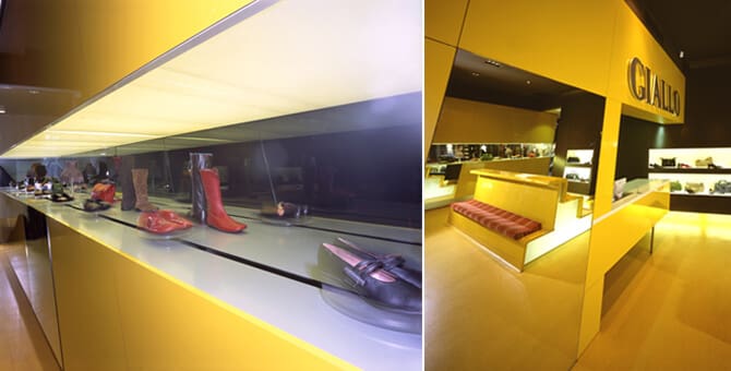A good example is the shoes Giallo store that we present below, which is part of one of the six new concepts of the brand. This store has a fabulous design, unique, a very bold yellow color, bright that represent the result of brand design created by Luigi Roselloi architects, and that received in 2004 an award for this work – IDAA Interior Design Awards and has succeded this performance by putting into practice this stunning ideas. Store building was performed by using talented young people full of dynamism and a burning desire to achieve an art class and professionalism, for architecture interior design of this store. Tilted walls, and doors displayed have been intentionally used as dynamic elements. are, the main window has a “sushi train” with rotating conveyor belt so that shoes arranged on shelves to be at eye level for those who wish to buy/or watch the shoes collections. Materials for the interior design retailer shoe store Giallo are baked enamel aluminum, vinyl and acrylic Swedish, merged and processed to restore the appearance of a contemporary design.