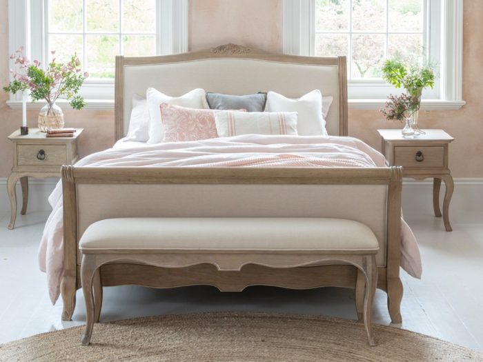 (Image credit Bedstar) Pictured: Gambier Camille Bed High Foot End with matching symmetrical bedside cabinets and vases flowers.