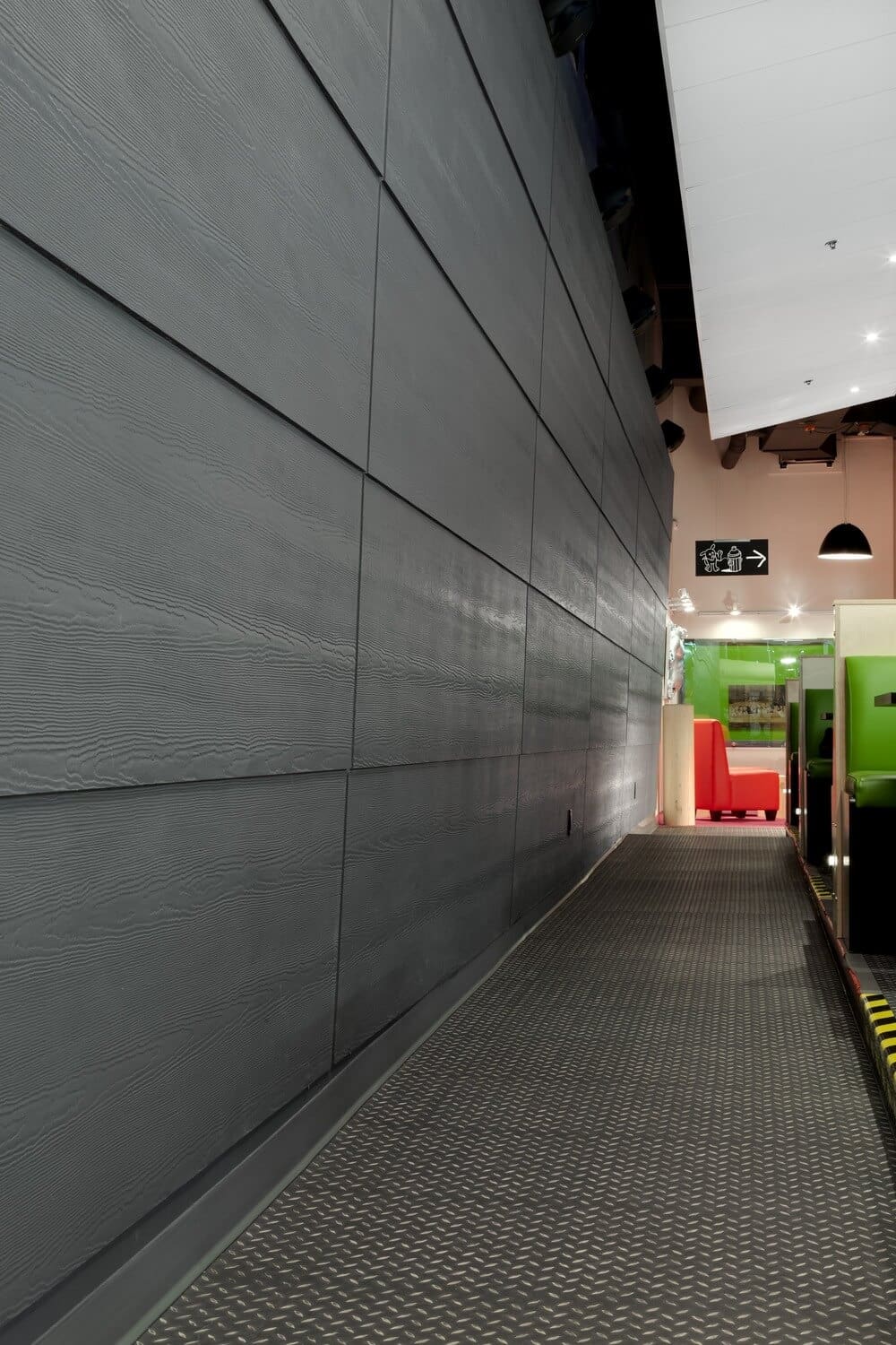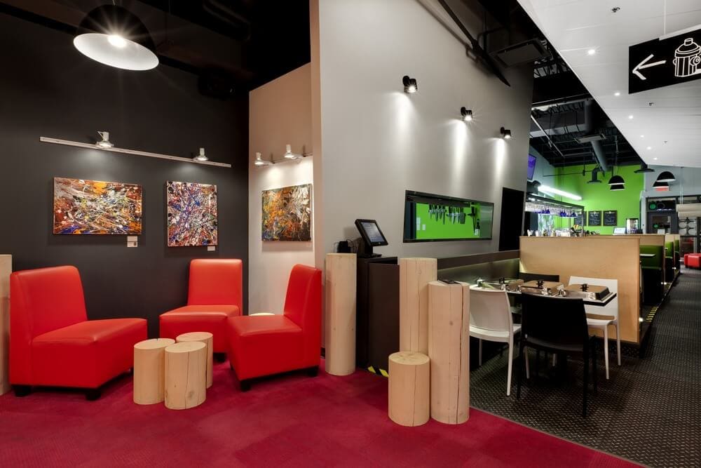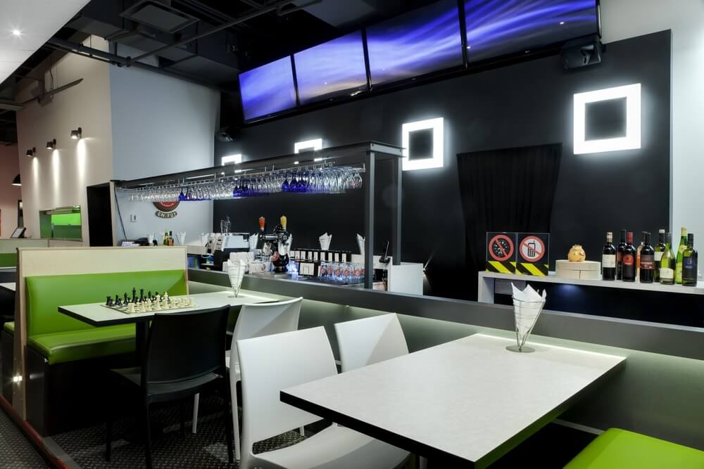 Additionally, they pull the joints along the walls, seal all the tiny holes, but the light still persisted because some customers said they still see the “fireflies” in the dark of the room! Wanted to stimulate the visual senses of customers, the architects creates a different kind of confusing sensory experience in the illuminated part of the restaurant. The lime green banquettes and the smart use of the same color for a few walls together with those orange chairs add a fresh touch to the restaurant’s interior design and complement both white and black decor. Completely new and interesting experience we must say!