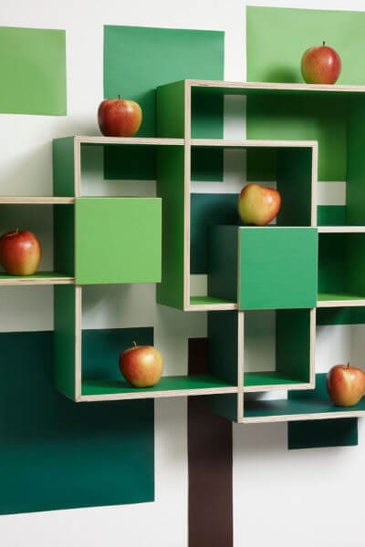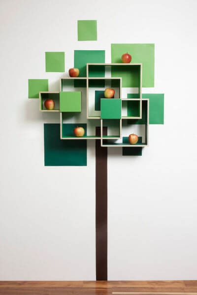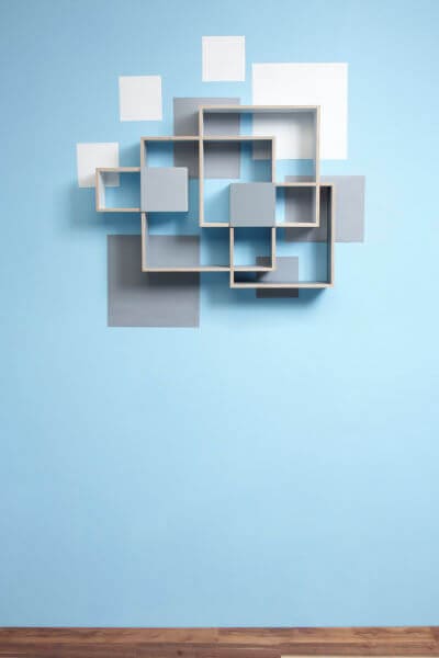 London based designer, from Iceland Throunn Arnadottir came with a brilliant idea, named “Tree and Cloud”, inspired by the geometrical paintings of Mondrian. He creates shelves in an interesting combination with wall decoration that captures shapes from nature. By applying green colors, the designer discovered that they turn beautifully into a crown of a tree creating a delightful effect on the wall. After that, he tried to make a cloud shelf and used gray-colored shelving and white and gray vinyl wall stickers.